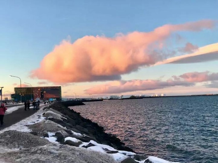 環島遊的起點和終點首都雷克雅未克(居住著冰島36萬人口中的80%),這是個天生麗質的美麗的地方! 是以藍天、雪山作背景,城市非常乾淨,陽光就好像是調色師一樣,不同時間段的顏色完全不同! 印象最深的就是早晚被染成粉紫色的雲彩! 拿著相機不停的拍拍拍就是我對這個城市的最貼切的愛的表達!