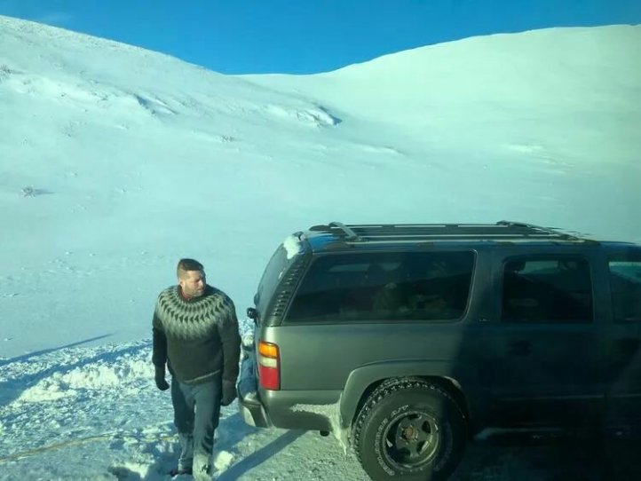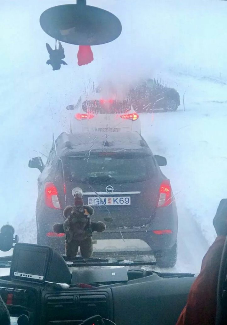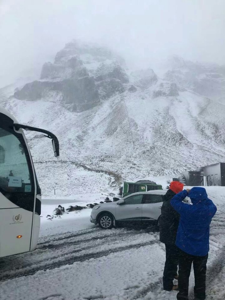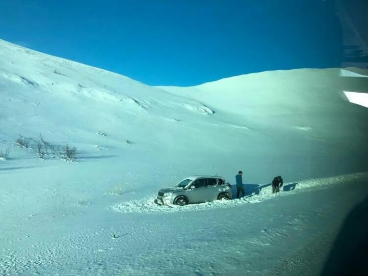 等候穿過暴風雨的堵車車隊! 關鍵是很多小車打滑,或者是想掉頭半天轉不過來。 。 。 路上偶遇了國內遊客自駕遊的車子陷入路邊的厚厚雪地裡! 我們來回一個多小時經過同一個地方,這輛車子貌似已經不能通過自救或是路過的好心人拖出雪地,只能在車里安靜的等待救援! (據說,多數如果沒有提前購買保險,救援費用會貴的驚人!)慶幸我自己明智的選擇了俱樂部,這的確不是適合每個人自由行的地方!