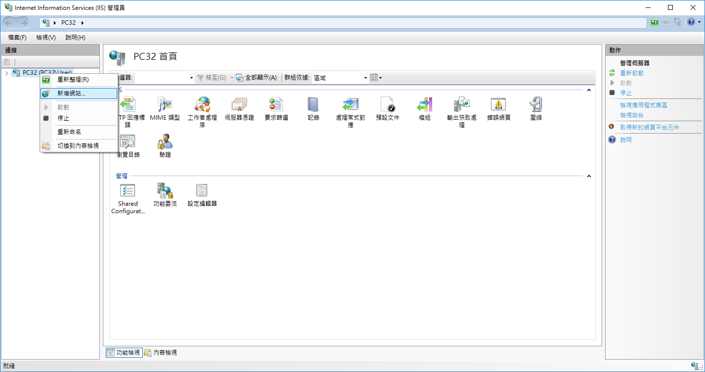 2019-06-042019-06-11 Stella 安裝IIS 分享此文: 按一下即可分享至 X(在新視窗中開啟) X 按一下以分享至 Facebook(在新視窗中開啟) Facebook 喜歡 正在載入... 相關