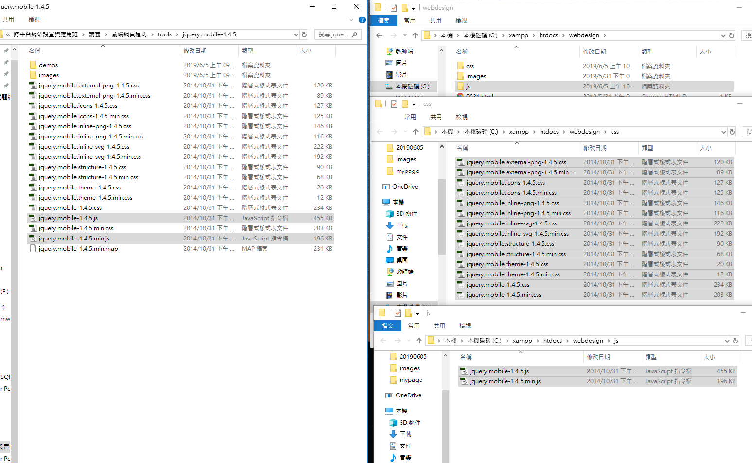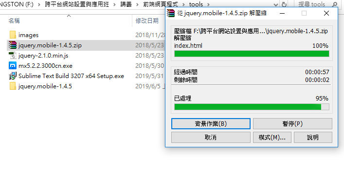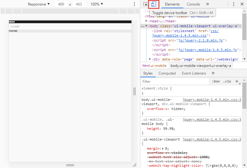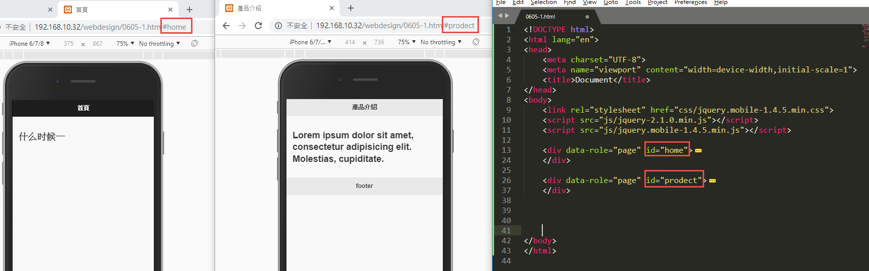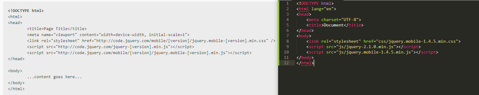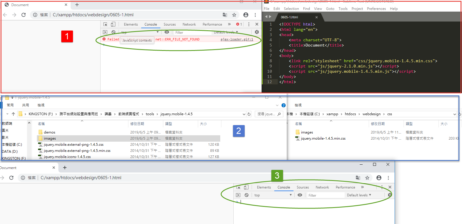 jQuery Mobile 網頁是使用 HTML5 格式設計,必須在網頁第一行加上宣告。