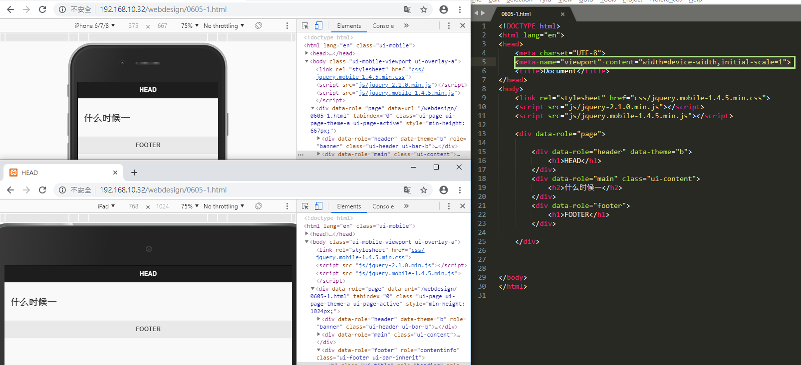 在行動裝置上,還需要加上行動裝置的比例和大小。預設並未產生下列程式碼,使用者必須依實際需要手動加入,此處是最容易忘記的地方。