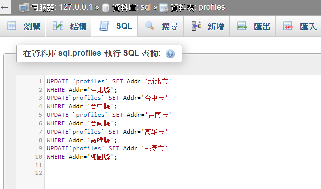 2019-07-092019-08-19 Stella 0709SQL新增修改 分享此文: 按一下即可分享至 X(在新視窗中開啟) X 按一下以分享至 Facebook(在新視窗中開啟) Facebook 喜歡 正在載入... 相關