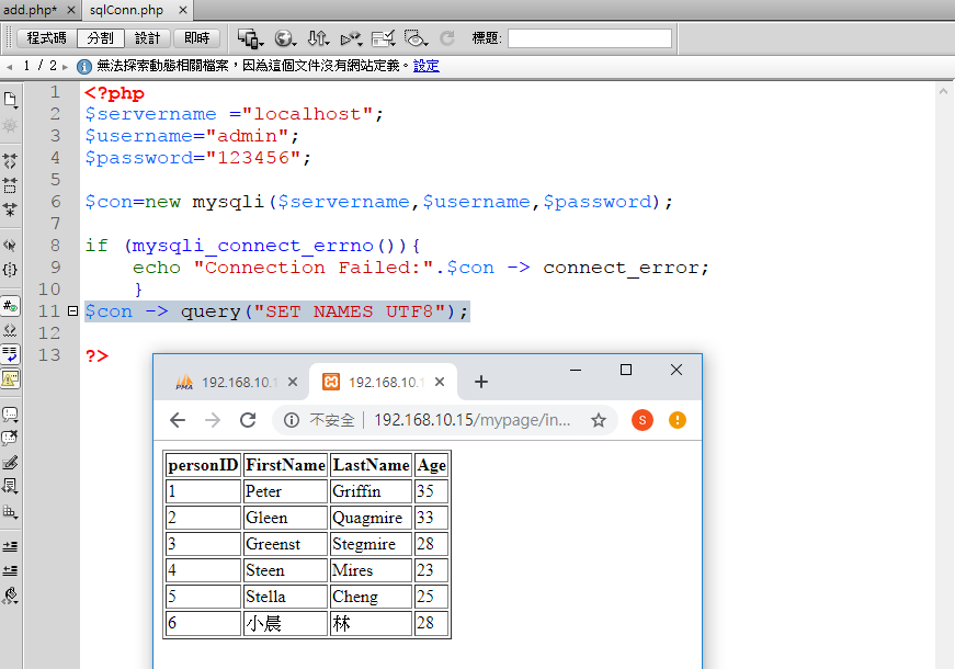 2019-07-112019-08-19 Stella 0711解決亂碼.sql修改刪除 解決亂碼 檢查網頁編碼須為 UTF-8檢查資料表欄位須為UTF-8 在sqlConn.php中加入$con ->query(“SET NAMES UTF8”); 分享此文: 按一下即可分享至 X(在新視窗中開啟) X 按一下以分享至 Facebook(在新視窗中開啟) Facebook 喜歡 正在載入... 相關